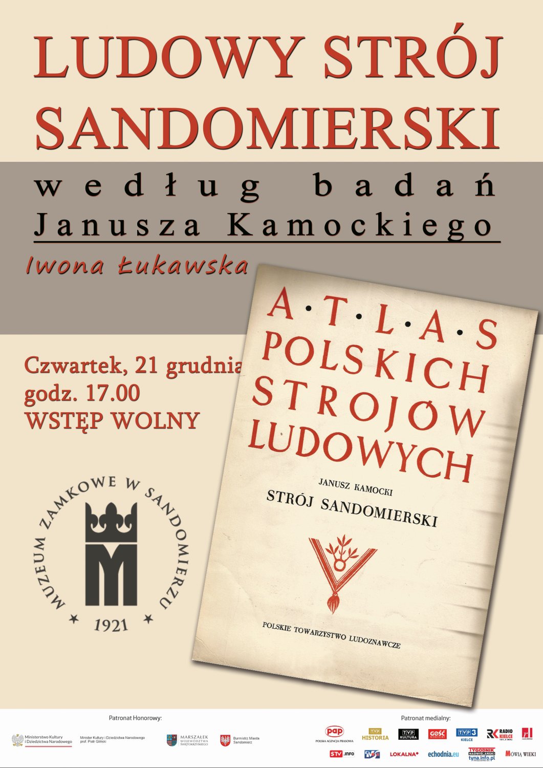 Muzeum Zamkowe w Sandomierzu zaprasza na wykład zatytułowany „Strój sandomierski według badań Janusza Kamockiego”, który wygłosi Iwona Łukawska – kustosz w Dziale Etnograficznym Muzeum Zamkowego w Sandomierzu.