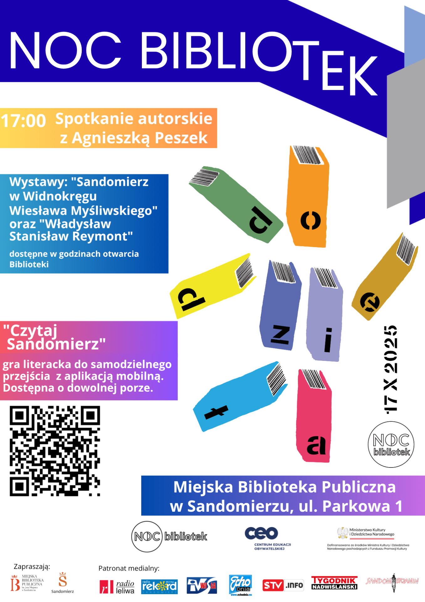 Miejska Biblioteka Publiczna w Sandomierzu zaprasza do udziału w ogólnopolskiej akcji Noc Bibliotek, która odbędzie się w sobotę, 17 października 2025 roku w siedzibie biblioteki przy ul. Parkowej 1.