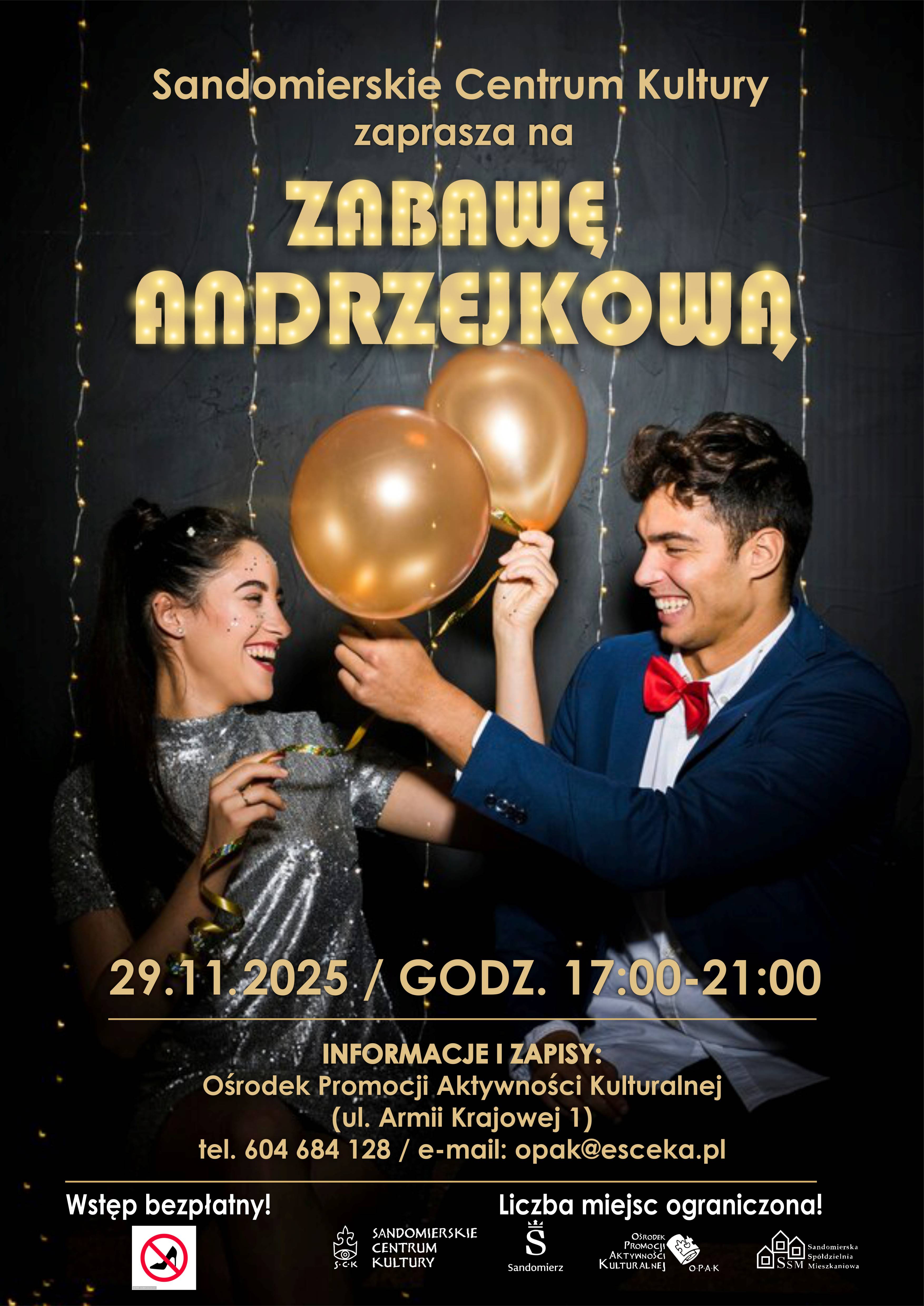 Wraz z Sandomierską Spółdzielnią Mieszkaniową serdecznie zapraszamy Państwa na tegoroczne obchody Andrzejek, które odbędą się 29 listopada 2025 r. Tradycja wróżb, zabaw i spotkań w gronie bliskich ponownie zagości w naszej przestrzeni, tworząc wyjątkową okazję do wspólnego spędzenia czasu.