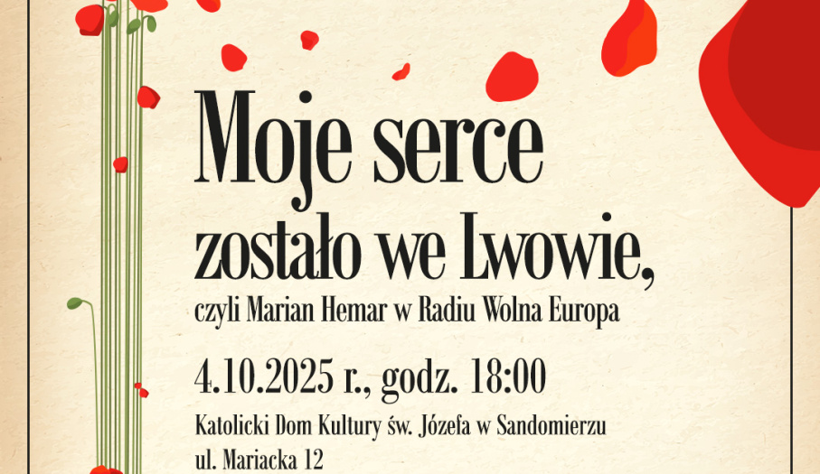 Instytut Pamięci Narodowej zaprasza na wyjątkowy spektakl muzyczny, który przenosi publiczność do powojennych lat, gdy Marian Hemar – polski poeta, satyryk, dramaturg i autor piosenek – związany był z londyńskim Radiem Wolna Europa. Odbędzie się on 4 października o godz. 18.00 w Katolickim Domu Kultury św. Józefa w Sandomierzu, ul. Mariacka 12. Rezerwacja bezpłatnych wejściówek po adresem: wydarzeniakulturalne@ipn.gov.pl lub sms pod nr 691 452 818.