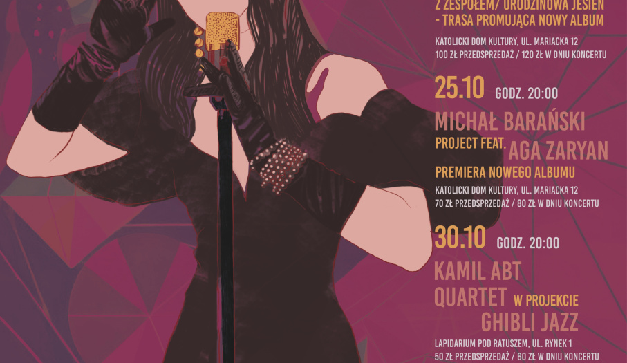 W tym roku przygotowaliśmy dla Was cztery wyjątkowe koncerty, które odbędą się w klimatycznych przestrzeniach Katolickiego Domu Kultury oraz Lapidarium pod Ratuszem. To będzie jesień pełna emocji, rytmu i artystycznych odkryć!